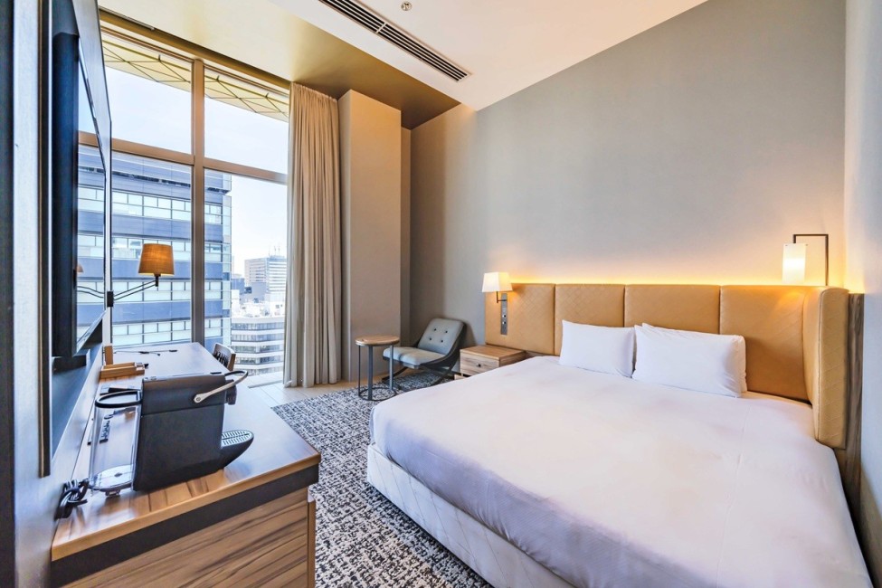 広々したベッドに、機能性を備えたゆとりのある客室で快適な時間をお過ごしください。